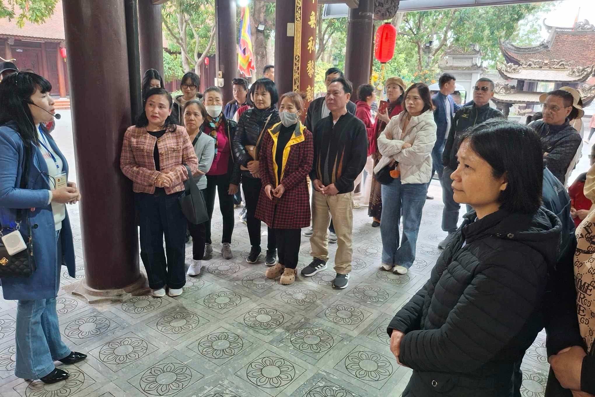 Du khách tham quan điểm đến trong tour miễn phí của tỉnh Bắc Ninh ngày 8/3. Ảnh: Hồng Ngân.