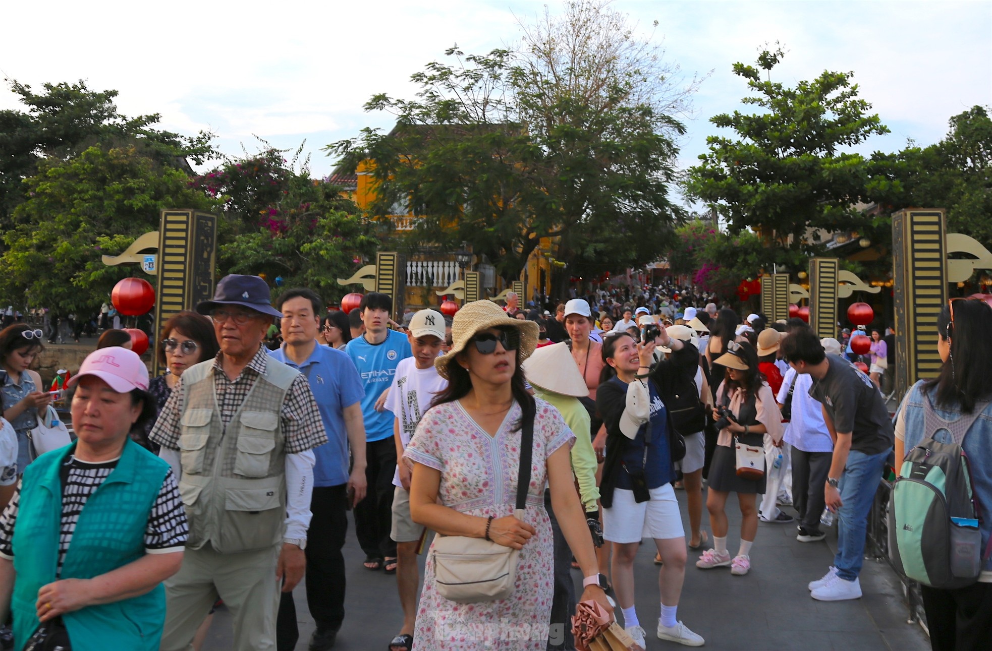 Ghi nhận của PV Tiền Phong, rất đông du khách trong và ngoài nước đổ về phố cổ Hội An tham quan. Càng về chiều lượng du khách càng đông tại các tuyến đường dọc phố cổ, điểm tham quan dịp lễ 30/4-1/5. Ảnh: Hoài Văn.