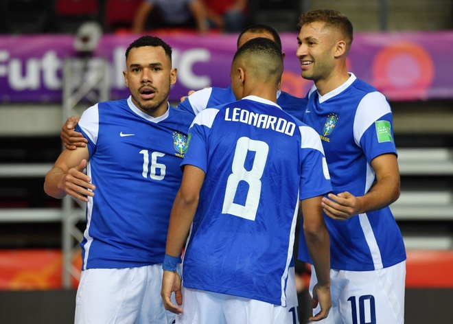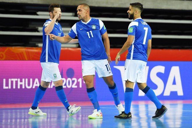 Sau hơn 10 phút, tuyển futsal Brazil tiếp tục tạo ra sự áp đảo. Họ cũng tạo ra nhiều cơ hội nhưng Pito hay Lino không dứt điểm sắc bén như Ferrao. Ảnh: Getty Images.