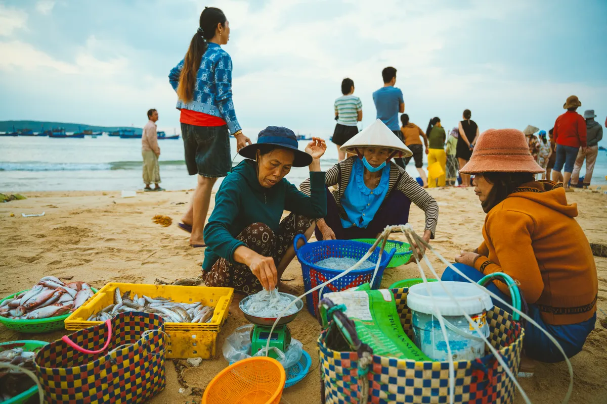 Anh Nguyễn Ngọc Tuyến, một người trẻ vừa có hành trình xuyên Việt bằng xe máy đã ghi lại những khoảnh khắc đẹp ở mỗi vùng miền của Việt Nam, chia sẻ: “Những ngày ở biển, tôi thường dậy thật sớm, theo chân người dân ra chợ cá ven bờ. Chợ cá buổi sáng có thứ âm thanh ồn ào mà thân thương, mùi mặn của biển, những mẻ cá tươi rói vừa cập bến. Mỗi buổi sáng thật đẹp bắt đầu bằng sự hối hả rất đỗi bình dị như thế”.
