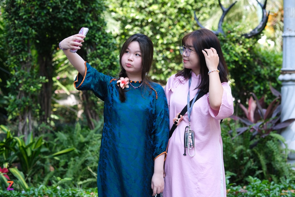 Bạn trẻ mặc áo dài tham quan Thảo Cầm Viên dịp 8/3/2024. Ảnh: Linh Huỳnh.