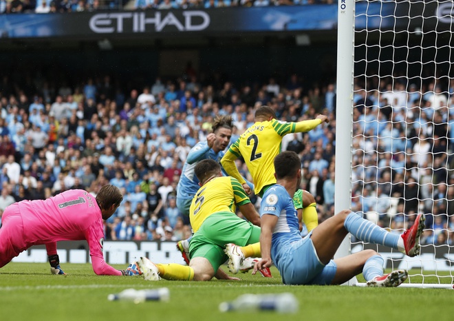 Man City dồn ép đối thủ ngay từ những phút đầu. Jack Grealish đang thi đấu ở vị trí sở trường như khi anh còn khoác áo Aston Villa, đó là tiền đạo lệch trái. Noriwch đang dồn toàn bộ đội hình về trước khung thành để phòng ngự.