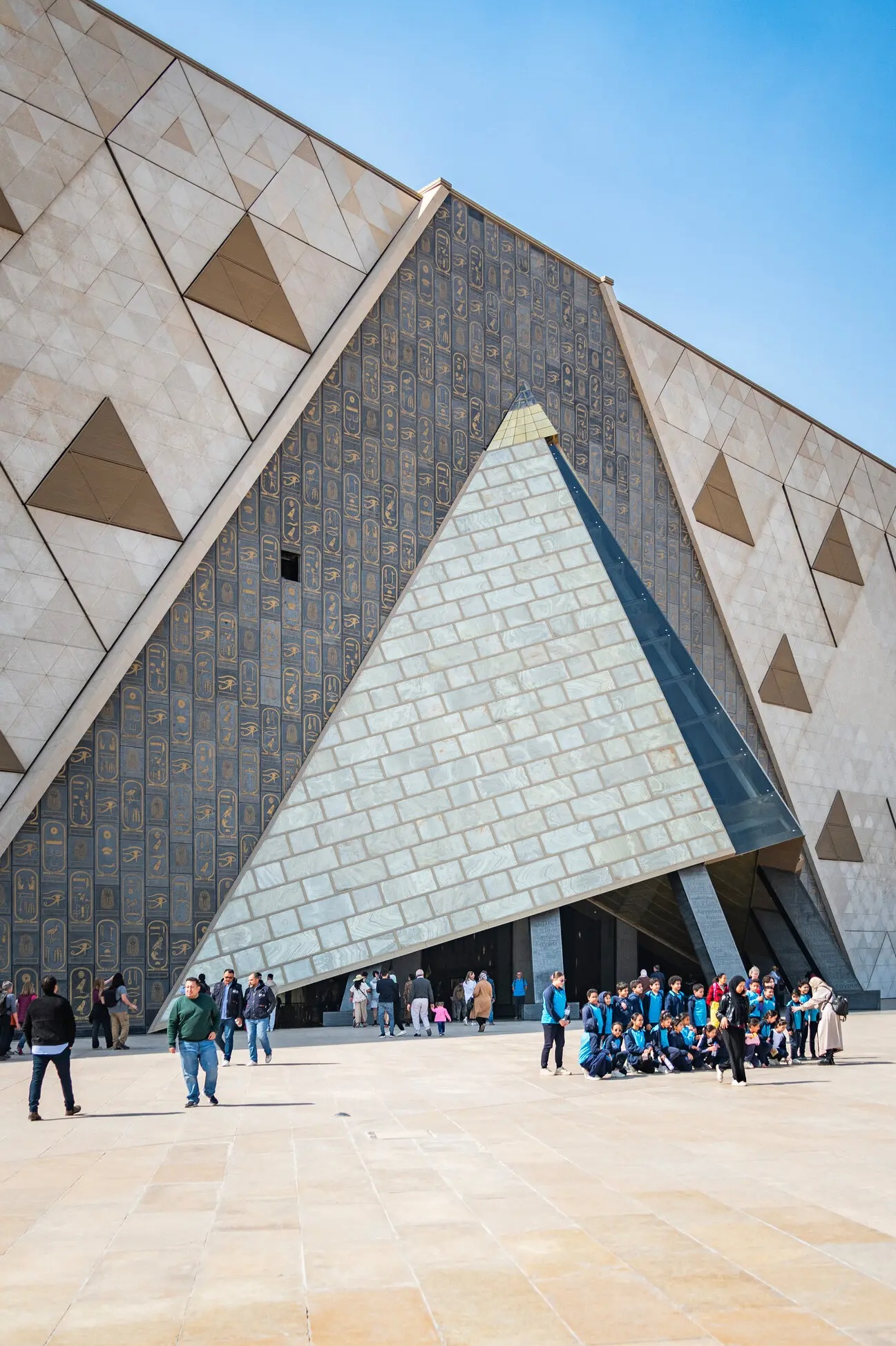 Nằm ở rìa sa mạc Giza, The Grand Egyptian Museum (GEM) là bảo tàng đồ sộ được xây dựng trong nhiều thập kỷ bằng các phiến đá khai thác tại địa phương.