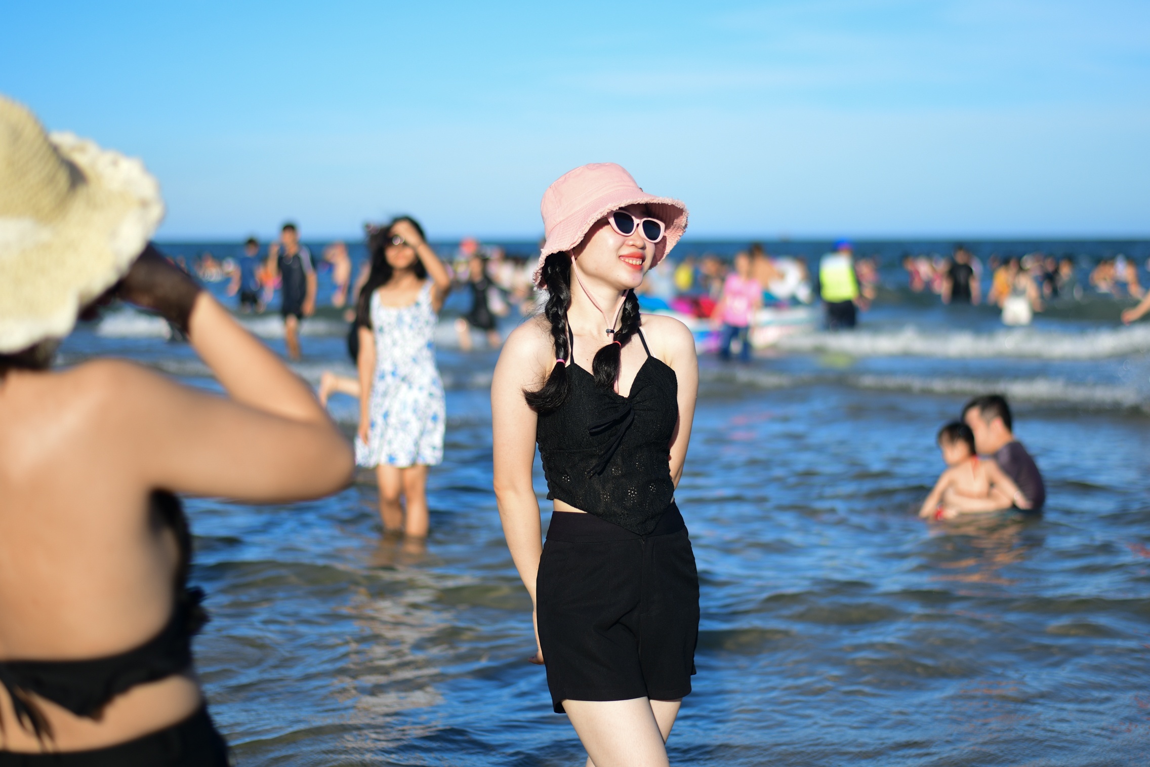 Đông nghịt khách tắm biển Vũng Tàu ngày 29//4/2024. Ảnh: Linh Huỳnh.