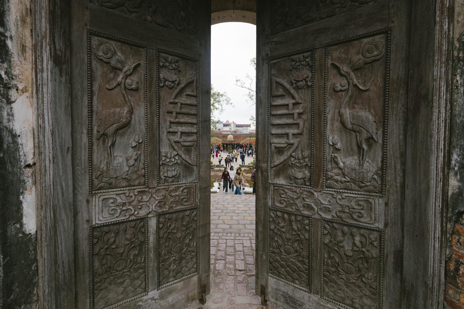 Nét cổ kính và những hoa văn, kiến trúc thời Hậu Lê được thể hiện rõ rệt trên cánh cổng và mái tam quan.