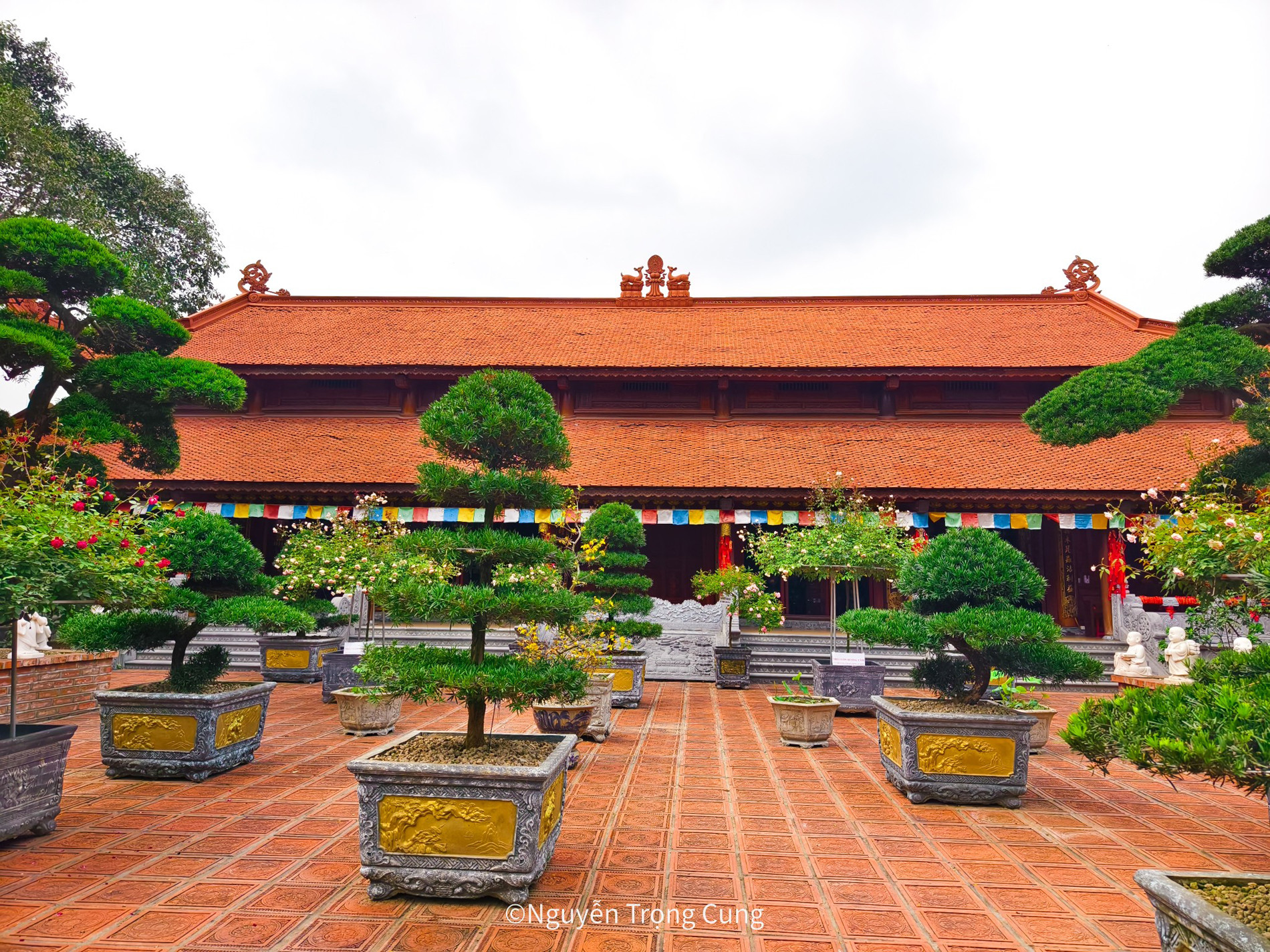 “Chùa mang nét đẹp cổ kính xen lẫn vẻ hiện đại, xung quanh bài trí nhiều loại hoa rực rỡ sắc màu”, anh Cung chia sẻ.