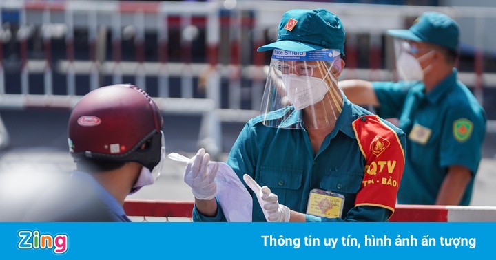 Người dân khai báo y tế tại các chốt kiểm soát dịch Covid-19. Ảnh: Chí Hùng. |