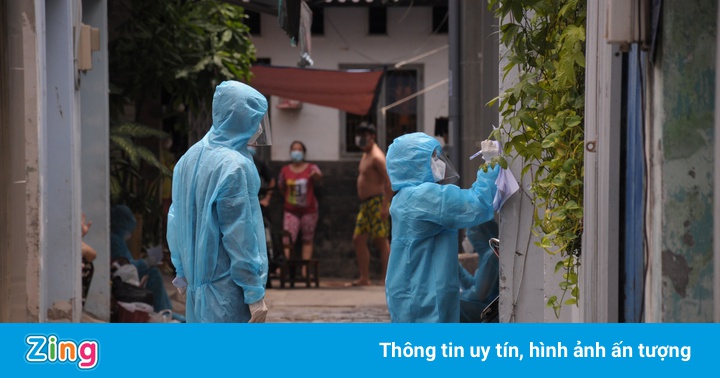Lực lượng chức năng TP.HCM lấy mẫu xét nghiệm cho người dân. Ảnh: Phạm Ngôn. |