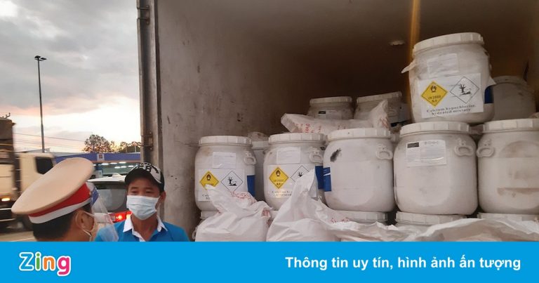 Cảnh sát phát hiện trên xe tải chở 7 tấn hóa chất các loại nhưng tài xế không xuất trình được hóa đơn, chứng từ và nguồn gốc xuất xứ.